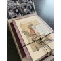Cet album mesurant 15 par 20 cm est construit à partir d’une « base simplifiée » en cartonnage, ainsi que d’une toile tissée dorée qui apporte ce côté chic à l’album. La structure est fermée par la mise en place d’un élastique doré qui s’accroche autour d’un bouton col à visser. Les pages sont quant à elles montées en U.